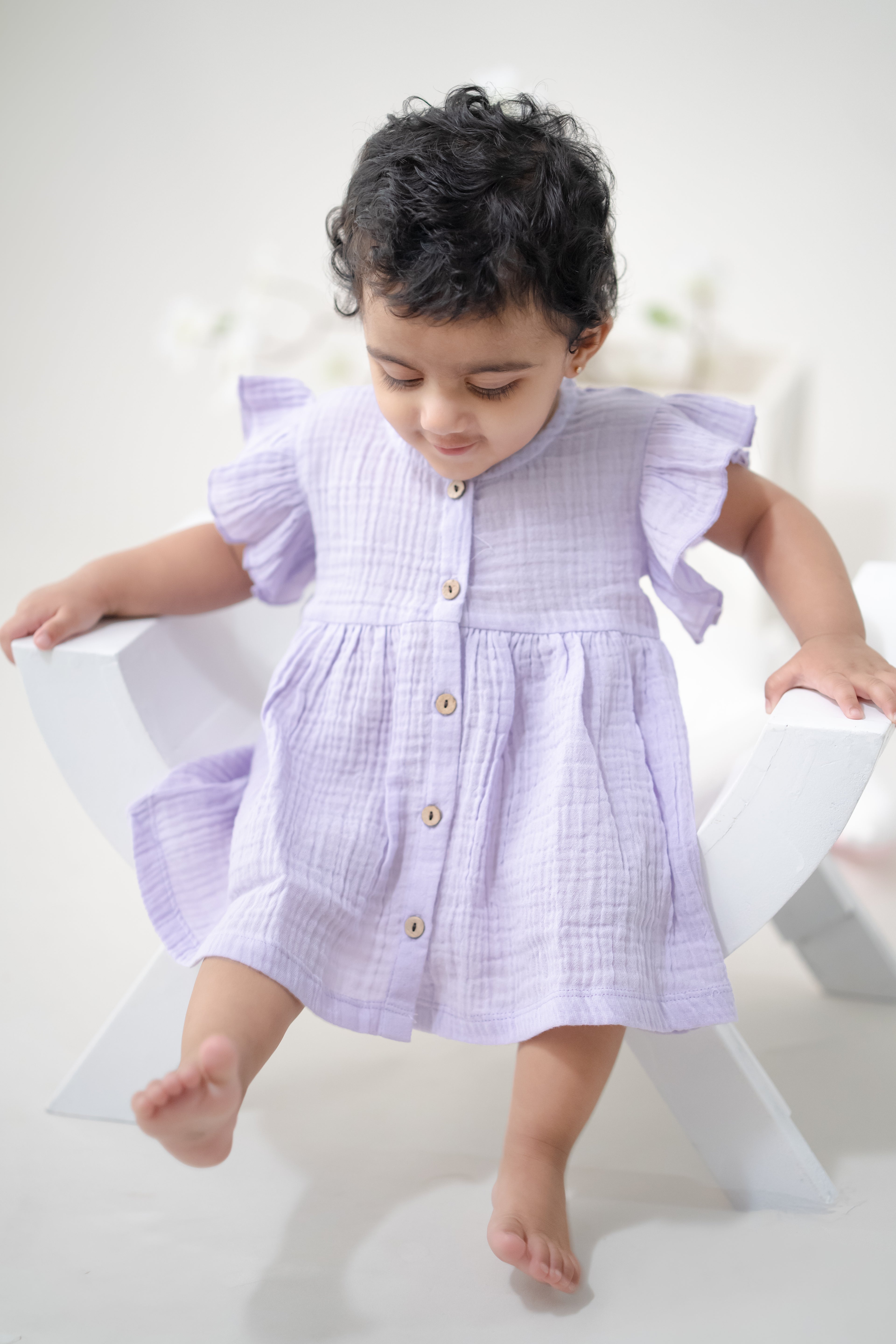 100% Organic Muslin Cotton -Lilac Whispers Flutter Frock